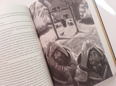 Wspomnieć muszę jeszcze kilka słów o wydaniu, bo jest ono wspaniałe. Słuchajcie: twarda oprawa, mapka jako wyklejka, mnogość ilustracji, piękne inicjały na początku rozdziałów, ozdobne zawijańce zamiast tradycyjnych gwiazdek/podziałek. Kiedy ogląda się tę publikację zapiera dech w piersiach. Nie wiem, jaki macie stosunek do książek, które kupujcie, ale ja właśnie takie egzemplarze chcę mieć na mojej półce (nawet kiedy muszę wydać kilka złotych więcej). Dlaczego? Mam ograniczoną powierzchnię na książki, więc chcę, żeby na pólkach stały piękne egzemplarze.